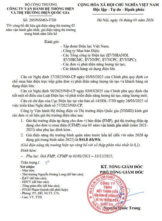 Công ty Vận hành Hệ thống điện và Thị trường điện Quốc gia (NSMO) công bố...
