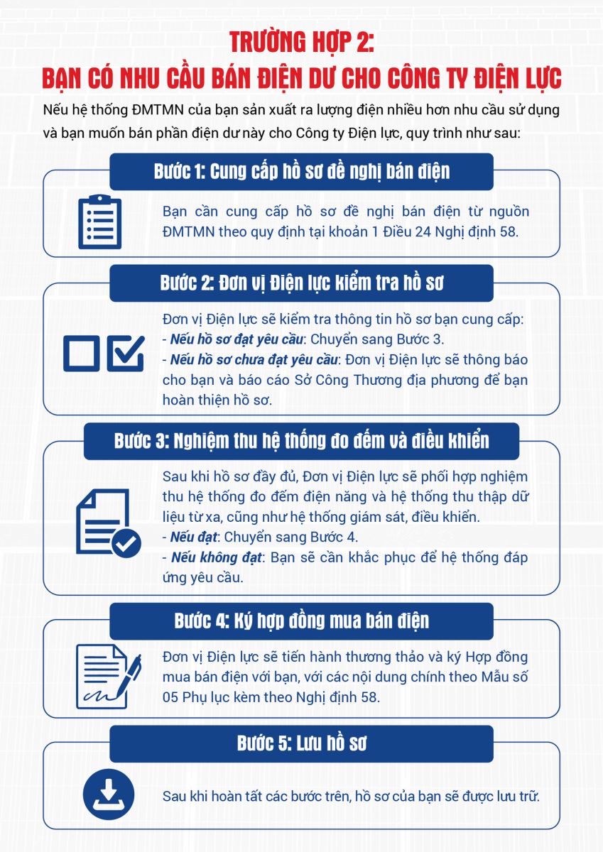 III. Trình tự thực hiện với nguồn ĐMTMN có đấu nối với hệ thống điện Quốc gia và có bán điện dư: