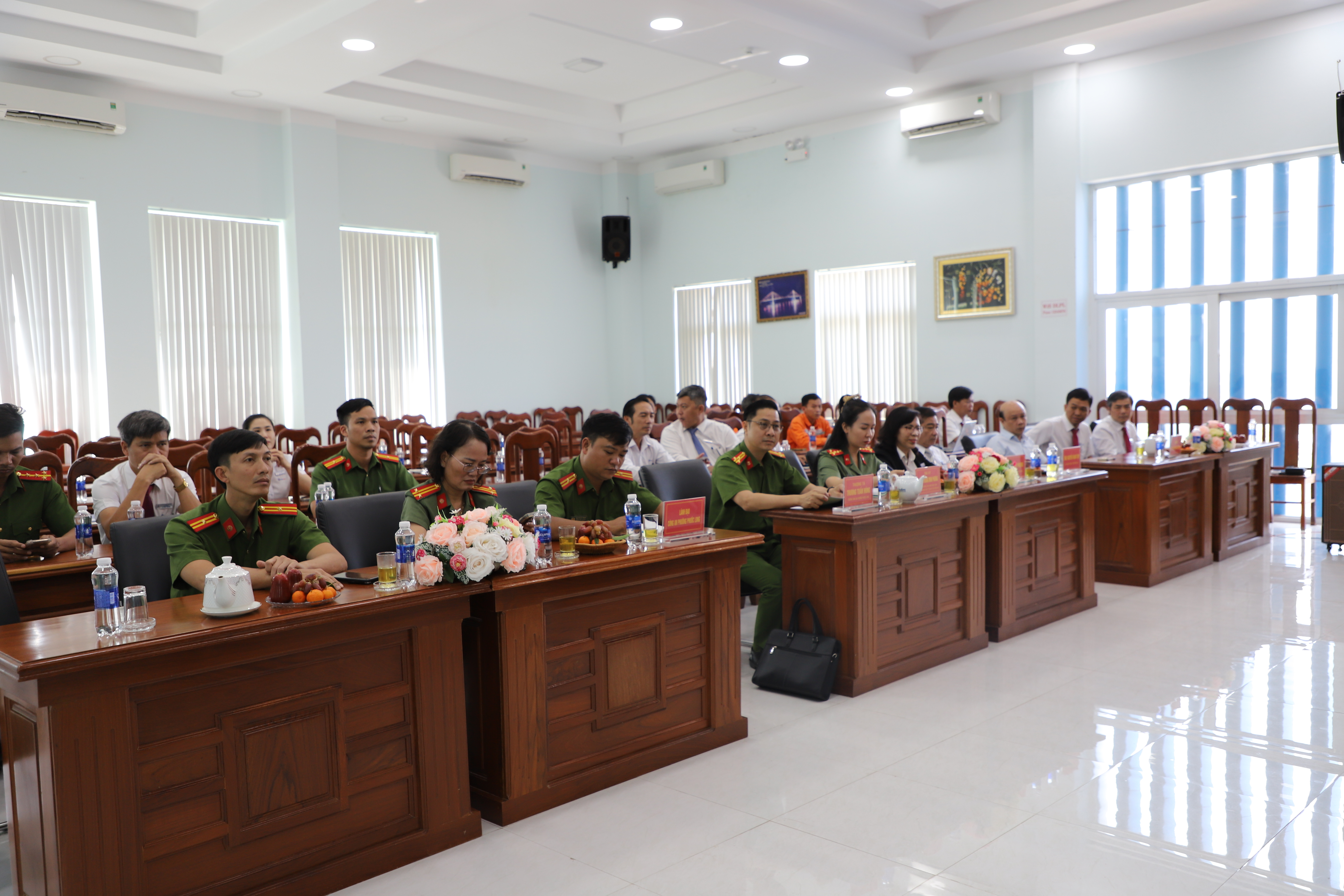 Tham dự có Thượng tá Trương Tuấn Hùng – Trưởng Công an phường Phước Long; Đại úy Nguyễn Hoàng Minh Phương – Phó Đội trưởng Đội An ninh năng lượng, Phòng An ninh kinh tế Công an tỉnh Đồng Nai; ông Nguyễn Thanh Tâm – Bí thư Chi bộ, Đội trưởng Đội Quản lý điện Phước Long và bà Lê Thị Kim Phượng – Trưởng phòng Kiểm tra Thanh tra và Pháp chế, Phó Chủ tịch Công đoàn Công ty Điện lực Đồng Nai;