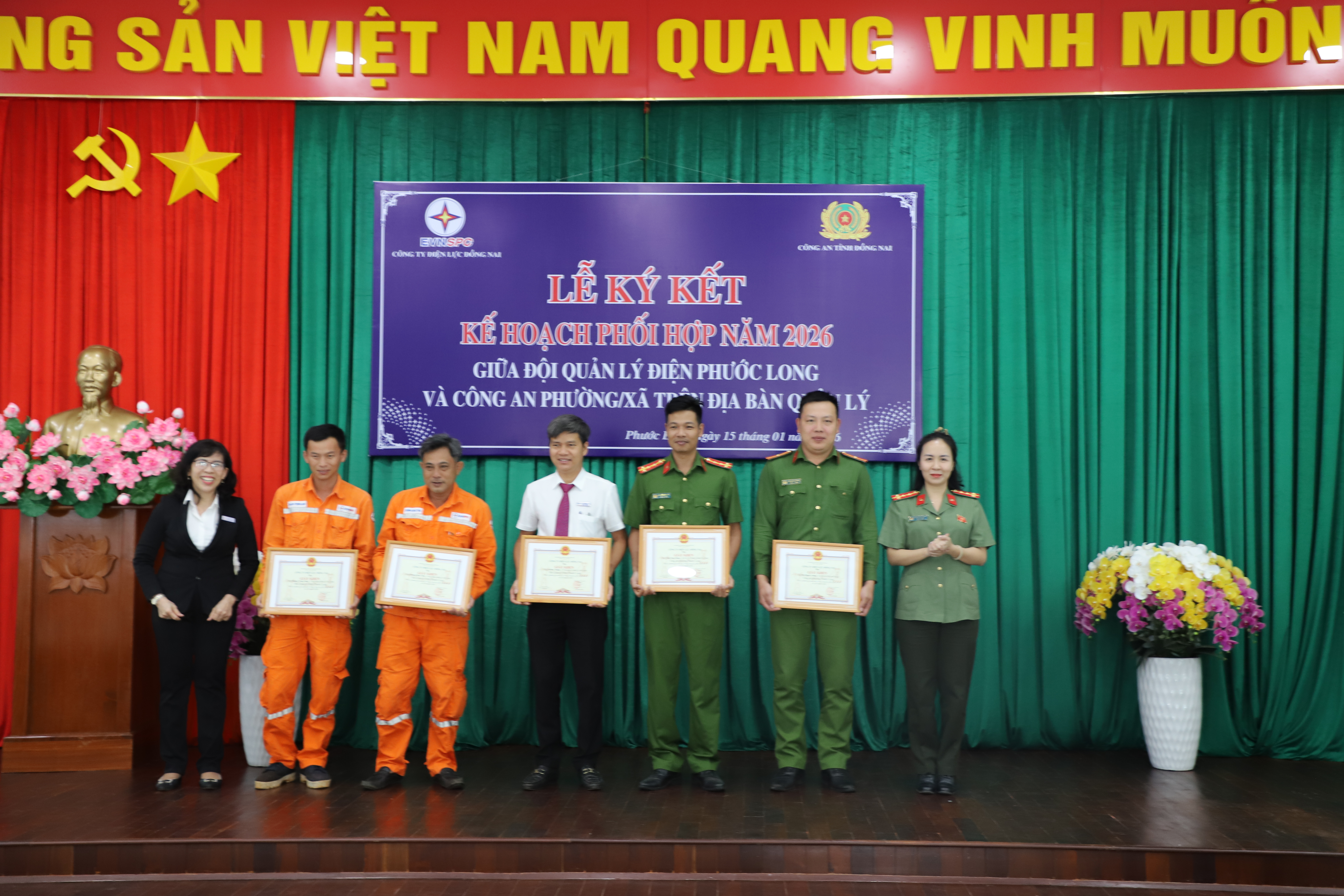 Ngày 15/01/2026, Công ty Điện lực Đồng Nai (PCĐN) tổ chức chương trình tuyên dương, khen thưởng và ký kết quy chế phối hợp bảo vệ tài sản của ngành Điện tại phường Phước Long, tỉnh Đồng Nai.