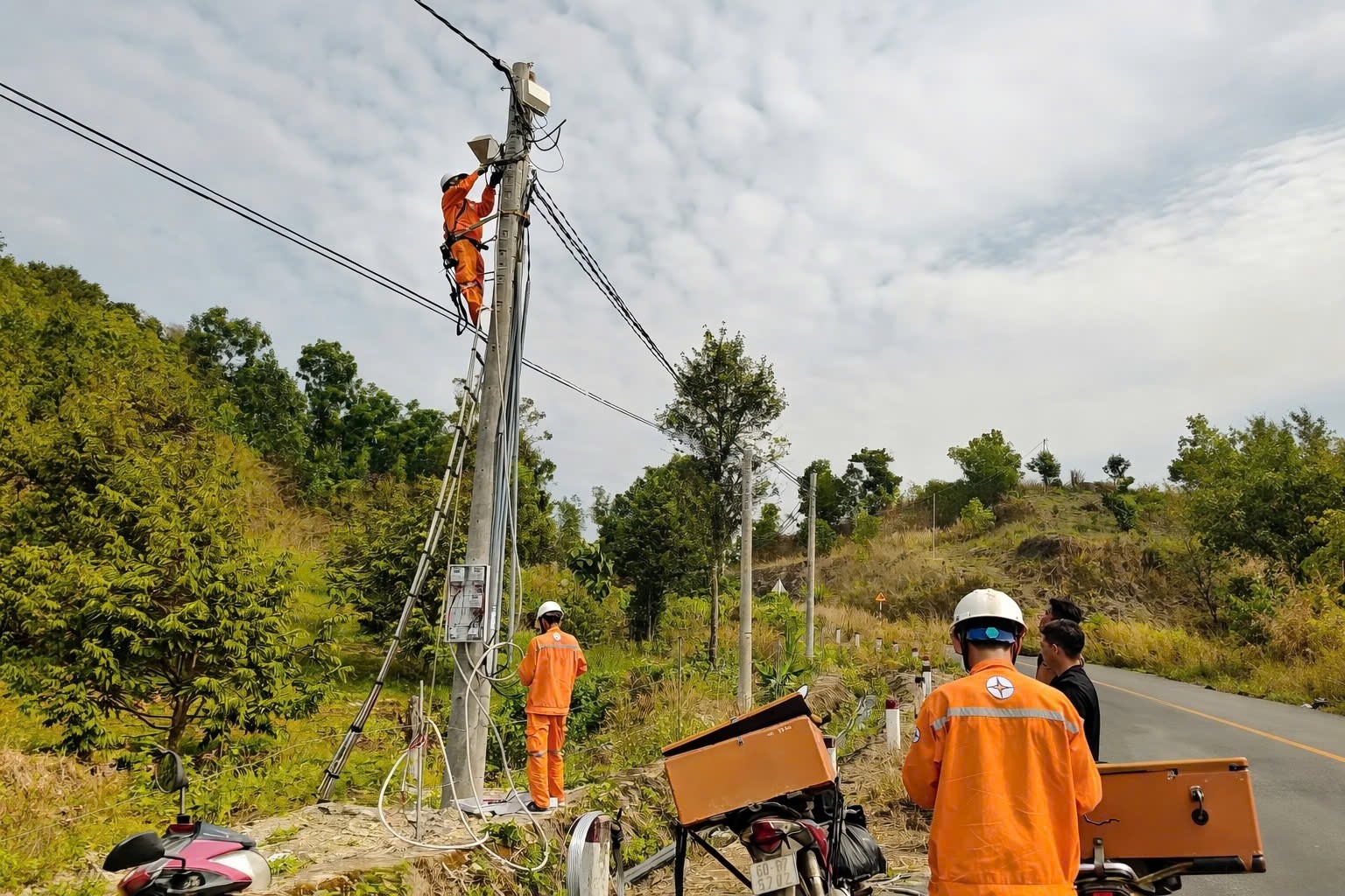 Nhân viên Đội Điện lực Định Quán đang gắn công tơ cho các hộ dân trong ấp.